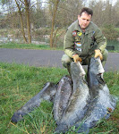 Primecujemo da som lovi i to podosta daleko od nas,uglavnom prema sprudu koji se vidi ispod napera.Savetujem Neriy-u da proba prema sprudu,tamo dokle moze zabaciti jer je on bio u blizoj poziciji i posle par zabaca mi odgovara da voda nije mnogo duboka i da bas u centru povratnog toka postoji podvodno ostrvo izduzenog oblika...e to je ono sto me zanima i odmah zatim Nery vice,"evo ga"...Skacem kao gazela da dohvatim aparat i zamalo da slomim nogu,kad mi on porucuje da som nije veliki i da ce ubrzo da pozira :-).Sa gornje strane penela,sve prsti,bucov se bas nesto jutros razjurcao.Ostavljam teskasa i moj verni Hardy vec lansira toby-ja od 10 gr u samo zariste dogadjaja...par okretaja i udarac...ovde kad radi bucov radi.Jedini problem je sto ima toliko sitnih komada da oni veliki ili nestignu ili nece da se mesaju sa boranijom pa je one prave dosta tesko uloviti...3-4 komada i Nery me pono obavestava da je imao udar...e sad je na mene red :-).Posle samo dva zabaca i ja vicem "evo ga"...nije doduse veliki al je uvek zadovoljstvo imati soma na varalici...dobar je to borac.Posle 07,30 sunce je vec visoko na nebu i odlucujemo da se polako pakujemo...ja nemogu da jos malo neprobam bucova.Nista se nije promenilo ukupno 10-ak komada ali svi oko 0,5 kg.Na stapu Hardy od 1 oz. pletenici 0,04 i steli 2000S i to je uzivanje.